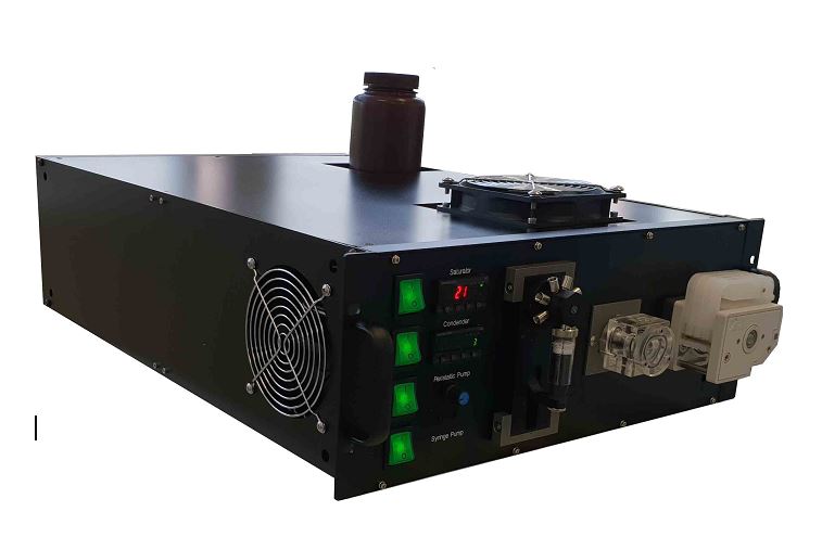 State-of-the-art online aerosol sampler was developed by Centennial Technology. To provide better insight into aerosol sources, atmospheric transport, chemical reactions, and many approaches have been developed recently to allow aerosol chemical composition measurements on much faster timescales. New Particle Condensation System (PCS) sampler coupled to two ion chromatography developed for high time resolution measurement of PM2.5. The approach for a new PCS sampler combines three proven aerosol technologies, such as particle growth in a saturator, particle condensation in a condenser, and droplet collection by a single jet inertial impactor. The collected sample was analyzed with an Ion Chromatograph (IC) to quantitatively measure the ionic compounds of PM2.5 for high time resolution. A modified saturator and condenser are employed to activate the particle growing. The impactor is used to collect the droplets into an impaction plate that is continuously washed out with the liquid stream containing an internal standard (10 μN LiBr) to determine dilution by condensed water. The collected samples were measured every 30 min depending on IC resolution time. Limit of detections (LOD) of PCS sampler for major ionic compounds (NO3 -, SO4 2- and NH4 +) in PM2.5 were 0.07 μg/m3, 0.02 μg/m3 and 0.01 μg/m3 respectively. Analytical precision of PCS sampler was 0.35% (NO3 -), 0.43% (SO4 2-) and 0.3% (NH4 +). Inter-comparison of the PCS sampler with Particle Into Liquid Sampler (PILS) was that the nitrate concentration of PCS sampler was 6% higher than PILS, indicating that nitrate dissociation would be minimum due to the lower temperature (~50°C) at the saturator of PCS sampler comparing the temperature of ~150°C at the saturator of PILS.