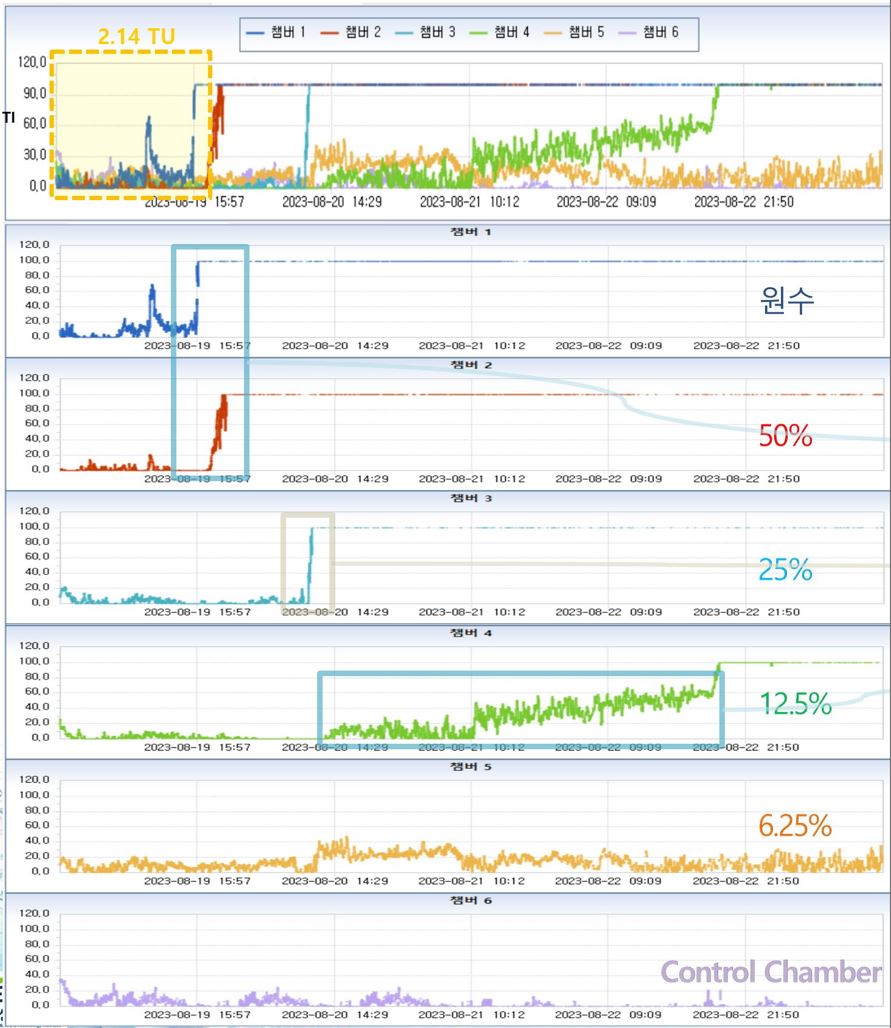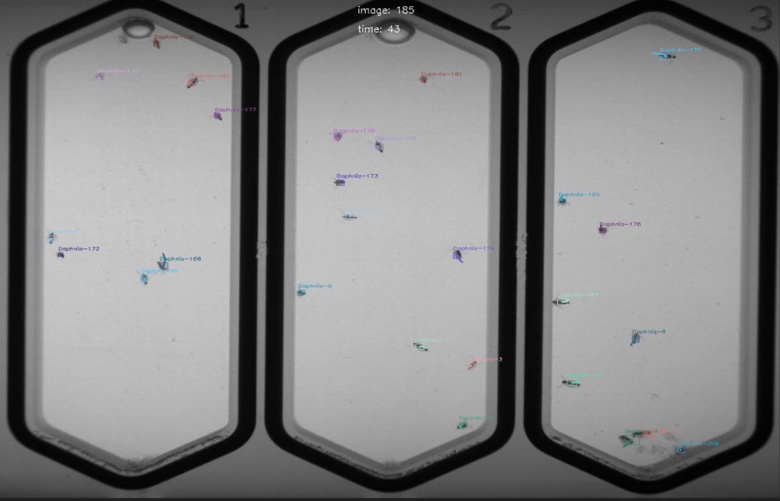 RoboTOX online toxicity monitor observes the behavior changes of Daphnia magna, commonly known as water flea, under the influence of toxic compounds in water. Sample water is serially diluted and runs through the measuring chambers containing the daphnia. The live videos of six chambers are recorded and the movements of daphnia are tracked to assess the behavior changes caused by toxic compounds. Toxic indicators are calculated by observed parameters and are used to give early warning of toxic shock in the wastewater treatment plants. RoboTOX is a world's first online toxicity monitor based on AI technology, which has the advantage of being able to predict the toxic unit(TU) equivalent value comparable to real TU value from a 24-hour Daphnia acute toxicity test. Centennial Technology plans to launch RoboTOX as a new product in 2024.